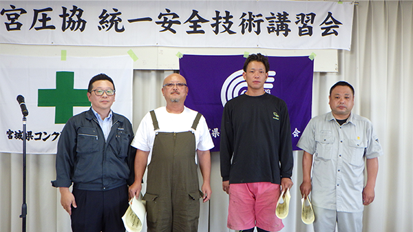 国統一安全・技術講習会 2025-08-17 14社135名 エスポールみやぎ 宮城県コンクリート圧送協会 技術功労者受賞者写真左より 遠藤会長 第一圧送 岡部寿治 さん 松本商事 渡邉悠河 さん 坂口組 小野寺賢一 さん 戻る